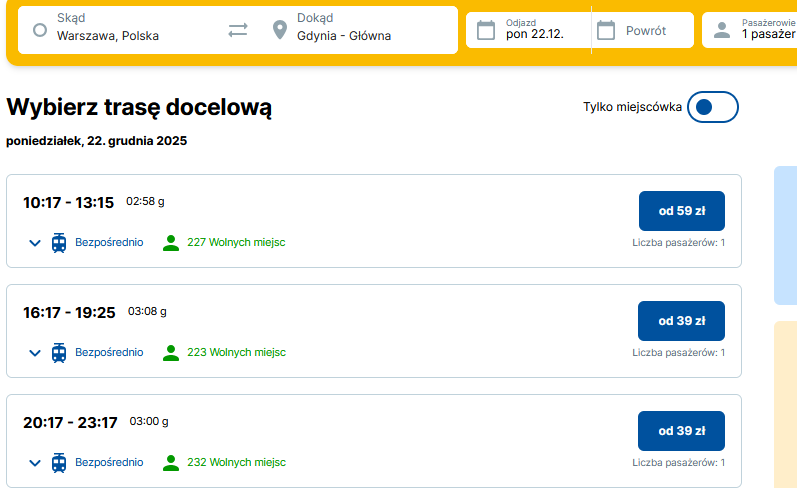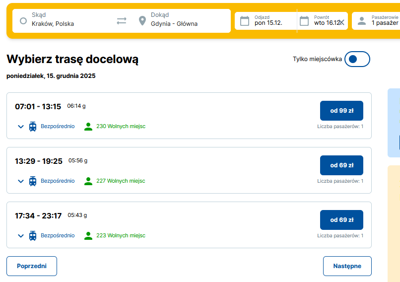 Нагадаємо, приватний чеський перевізник RegioJet з 18 вересня 2025 почав виконувати рейси з Кракова до Варшави, склавши таким чином конкуренцію для PKP Intercity. До 14 грудня поїзди чеського оператора курсуватимуть у тестовому режимі. У цей період квитки з Кракова до Варшави коштуватимуть лише від 39 злотих. Тестовий період триватиме до 31 березня 2026 року.