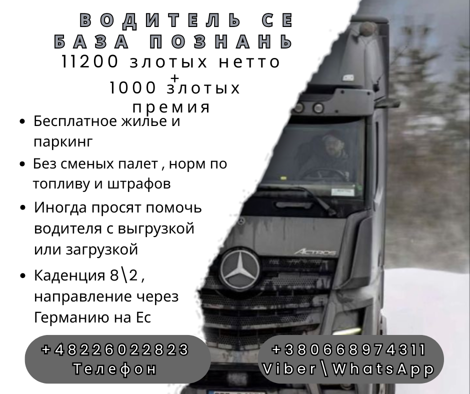 Водитель СЕ в маленькую транспортную компанию62-068 Ростаржево (70 км от Познани)Прямой ... |